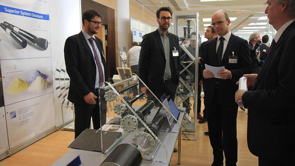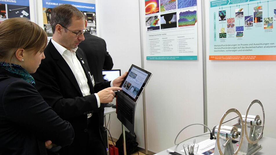 Der Tag stand ganz im Zeichen des Austausches von Ideen und Herausforderungen, der gegenseitigen Inspiration und des gemeinsamen Blicks über den Tellerrand. Über 54 Aussteller aus Hochschulen, Forschungseinrichtungen und Unternehmen präsentierten ihre neuen Entwicklung und Forschungsaktivitäten zu den Themenfeldern Mobilität, Digitalisierung, Produktions- und Prozesstechnik, Energie und Umwelt sowie neue Materialien und Leichtbau. Unter den Ausstellern waren unter anderem auch das Fraunhofer Institut und die Friedrich-Alexander-Universität aus Erlangen sowie die Microsoft Deutschland GmbH, die die Digitalisierung der Geschäftsprozesse mit dem "Internet of Things" vorstellt.