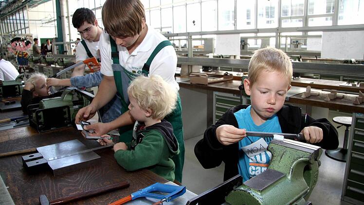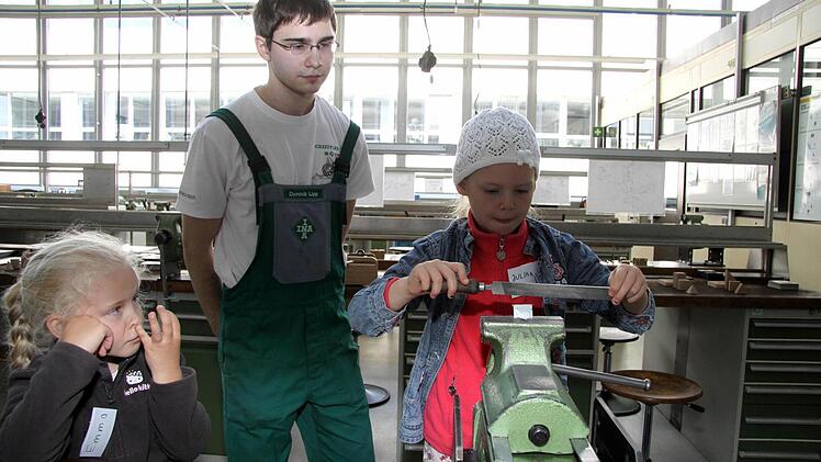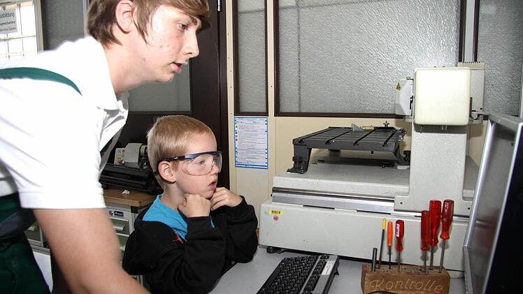 Schon aus organisatorischen Gründen werden die Kinder in Gruppen betreut und 20 kamen ins Ausbildungszentrum, erwartet von Ausbildern und jungen Auszubildenden. "Das macht so richtig Spaß, die stellen auch so richtig kluge Fragen", meinte Auszubildender Christian Beßler.