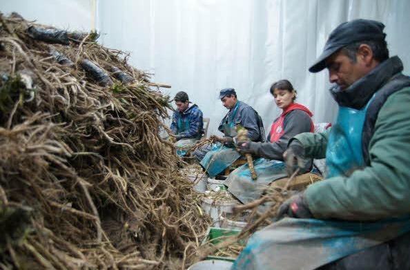 Auf dem Feld demonstrierte er, dass der Rettich-Roder nur im Schneckentempo fahren kann und danach viel Handarbeit bleibt. Ein erfahrenes Team von Fremdarbeitern steht dem Landwirt dabei zur Seite. Nach der Ernte sitzen sie vor einem riesigen Berg von Rettichen, entfernen die schwarzen Plastikmanschetten, die ein seitliches Wachstum der Wurzeln verhindern, schneiden Strunk und Fechser ab, raspeln die äußere Haut ab. Erst dann sind die Meerrettichwurzeln bereit zur Weiterverarbeitung.