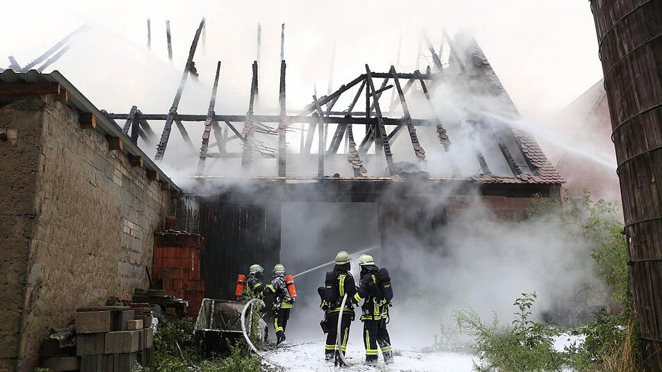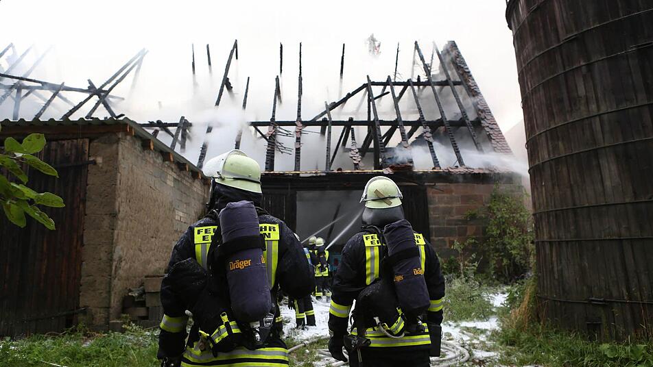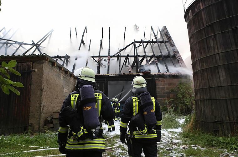Wahrscheinlich durch einen Blitzeinschlag hat am Samstagabend eine Scheune in Hüttendorf Feuer gefangen.