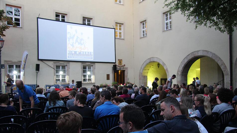 Noch bis zum Samstag dürfen die Besucher das ansprechende Ambiente beim Open-Air-Kino im Schlosshof genießen. Bekanntlich wird zum Jahresende das Rathaus abgerissen, das mobile Kino wird sich aber an einer neuen Spielstätte präsentieren und nach dem Bau des neuen Rathauses wieder zurückkehren.