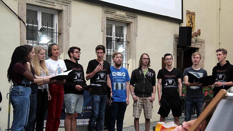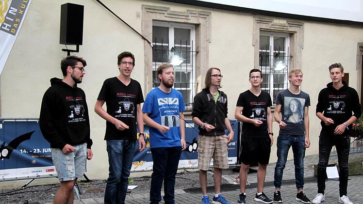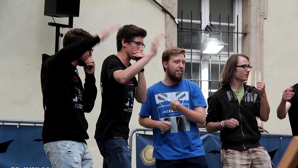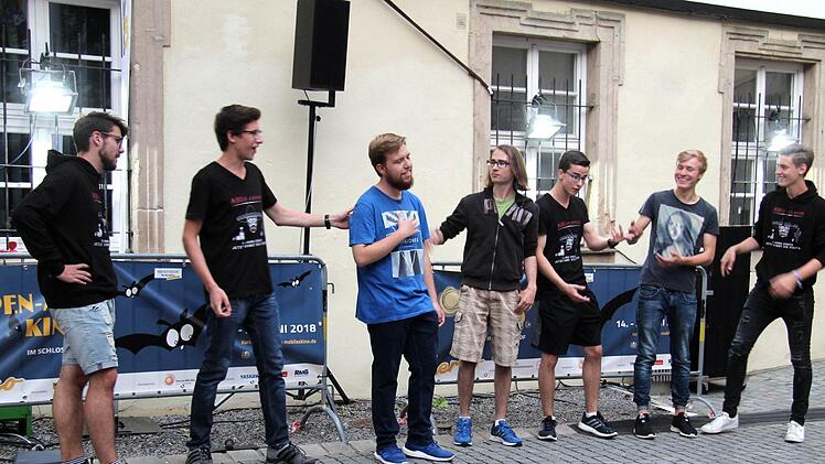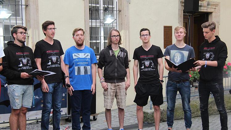 Wegen der Bravo-Rufe und des donnernden Applauses gab es einige Zugaben und als Hommage an die WM auch Stücke von Robbie Williams, der in Russland bei der Eröffnung sang. Die Straßensänger hatten eine ganze Reihe von Ohrwürmern und Balladen im Gepäck und schreckten auch vor Soli und "Der Jäger aus Kurpfalz" in etwas anderer Form nicht zurück. Zu einigen Stücken hatten die Straßensänger auch eine humorvolle Performance eingeübt und einige Besucher zückten ihren Geldbeutel ein zweites Mal. Denn die Abiturienten kamen nicht einfach so in den Schlosshof, schließlich muss der Abi-Ball finanziert werden und nach dem brillanten Auftritt gaben die Besucher gerne einen Obolus.