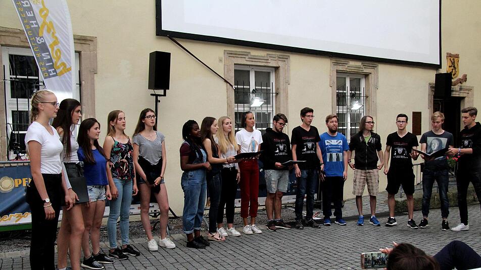 Am Samstag durften sich die Bescher auf "Fack ju Göhte 3" von Bora Dagtekin mit Elyas M'Barek, Jella Haase und Sandra Hüller freuen. Zum Film, in dem eine Klasse auf das Abitur vorbereitet werden, passte dann auch das Vorprogramm. Im mehr als halbstündigen Vorprogramm mit 16 jungen Sängerinnen und Sängern wurde das Publikum bestens eingestimmt. Der diesjährige Abi-Jahrgang des Gymnasiums Herzogenaurach präsentierte sich als "Straßensänger" und begeisterte "a-capella" und hervorragenden Solisten.