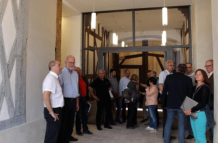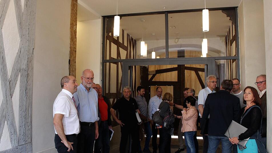 Bei schönem Wetter kann schon bald das Rathaus-Tor zum Schlüsselfelder Marktplatz hin weit geöffnet werden. Denn der Umbau des Erdgeschosses ist beinahe fertig. Anlass für Bürgermeister Johannes Krapp (CSU), die Stadträte vor der Sitzung zu einer Besichtigung einzuladen. Sie hätten ja den Umbau mitgetragen, sagte Krapp, verbunden mit seinem Dank an die Stadtväter.