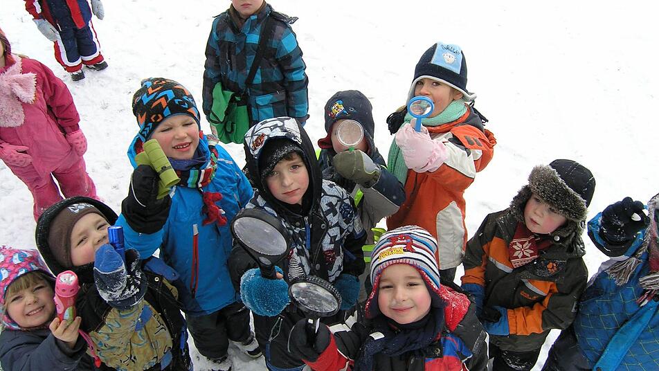 Seit Tagen herbeigesehnt haben diesen ersten Schnee die Kinder der Bärengruppe im Matthias-Claudius-Kindergarten in Höchstadt. Dick eingemummelt und mit Lupen und Taschenlampen ausgerüstet machten sie sich zur Spurensuche in den Wald auf. Und sie wurden im frischen Schnee fündig. Begeistert berichteten sie unserer Zeitung: "Wir haben Spuren von Rehen, Mäusen, Hunden, Menschen und Autos gefunden."