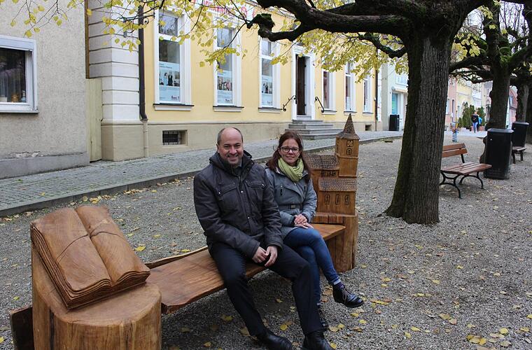 Unter den Linden am historischen Markt fand das erste Werk einen Platz. Dass es als Sitzbank ausgeführt wurde, die auch ihrem Zweck entsprechend genutzt werden kann, ist an dieser Stelle im Herzen der Stadt sehr praktisch.
