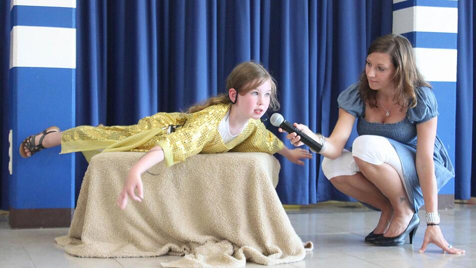 Hauptrolle lernt gerade erst lesen Seit Beginn des Jahres haben die 31 Kinder der Theatergruppe geprobt.  Die Kinder haben fleißig ihre Texte gelernt und singen geübt. Tina Sterzer, Leiterin der Theatergruppe, ist begeistert.  Sie hat mit den Kindern in den letzten Monaten das Stück eingeübt. Viele der Erstklässler hätten ja gerade erst mit dem Lesen begonnen. Das Auswendiglernen des Singspiels sei für die Kleinen  natürlich eine enorme Leistung. "Für die erste und zweite Klasse handelt es sich um ein recht anspruchsvolles Stück. Aber alle haben es richtig super gemacht", sagt Sterzer, die während des Muscials  vor der Bühne kniet und souffliert, wenn es mal ein bisschen beim Text hakt.