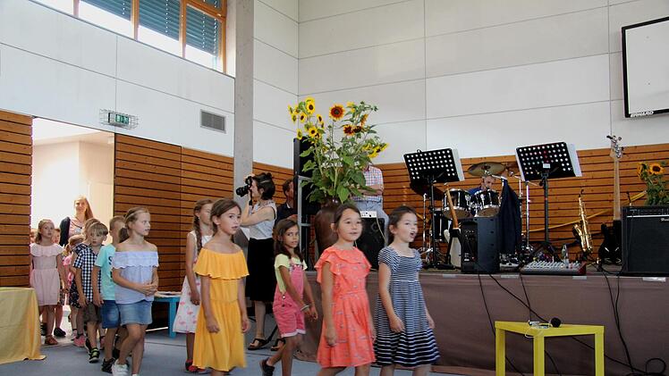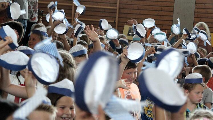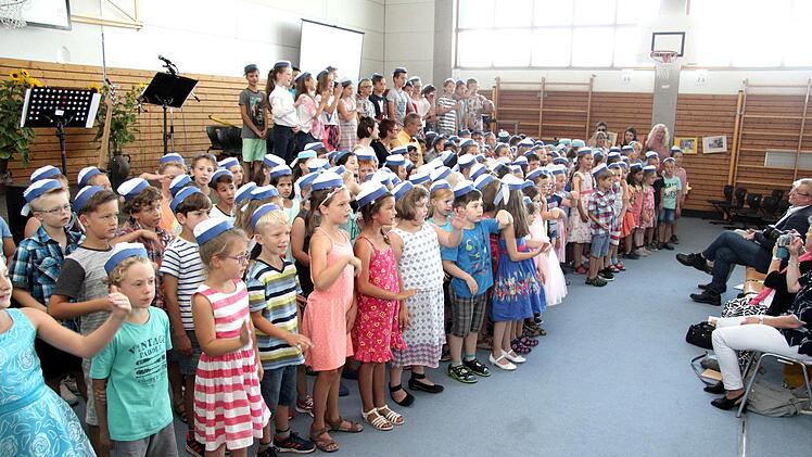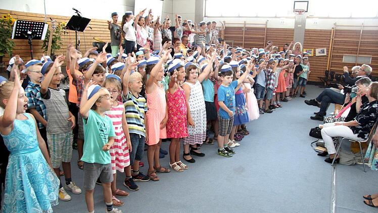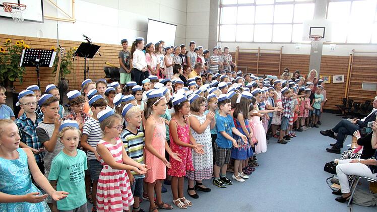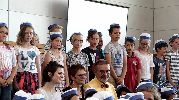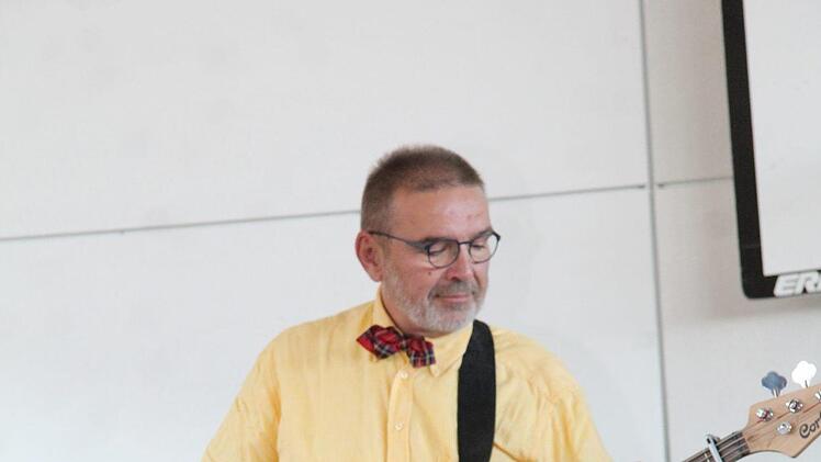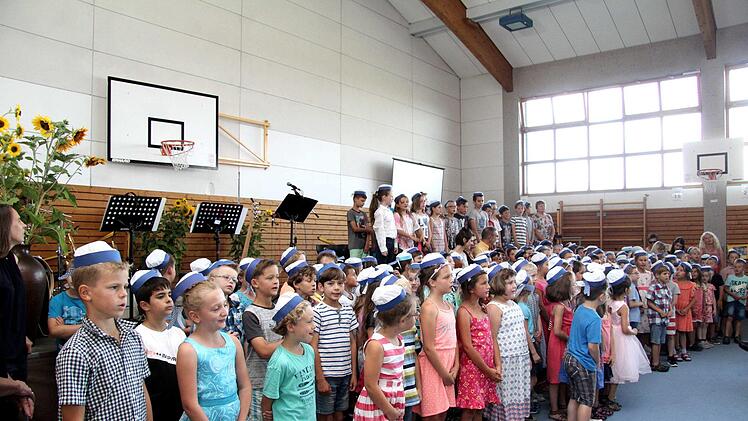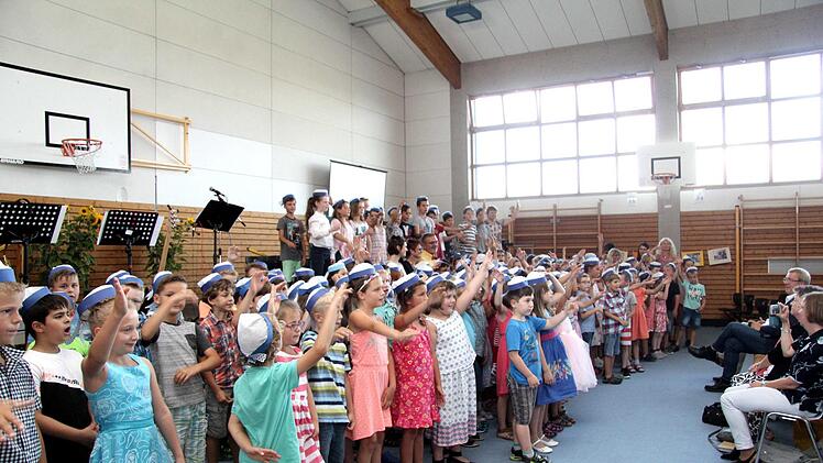 Das sehr unterhaltsame Programm gestaltete die Band mit Alfred Sammetinger (Bass), Heinz Fellermeyer (Gitarre), Manni Welker (Drums) und Karin Sammetinger (Sax) sowie Märchenerzählerin Silke Görner. Und natürlich die Kinder, die mit dem Schullied in die Sporthalle einzogen und mit dem Lied "So viel Stern am Himmel steh'n" sowie mit Matrosenkäppis und "Adieu und Ahoi" auszogen. Dazwischen gab es einen lustigen Sketch in Englisch, denn Sprachen lagen Sammetinger auch sehr am Herzen.