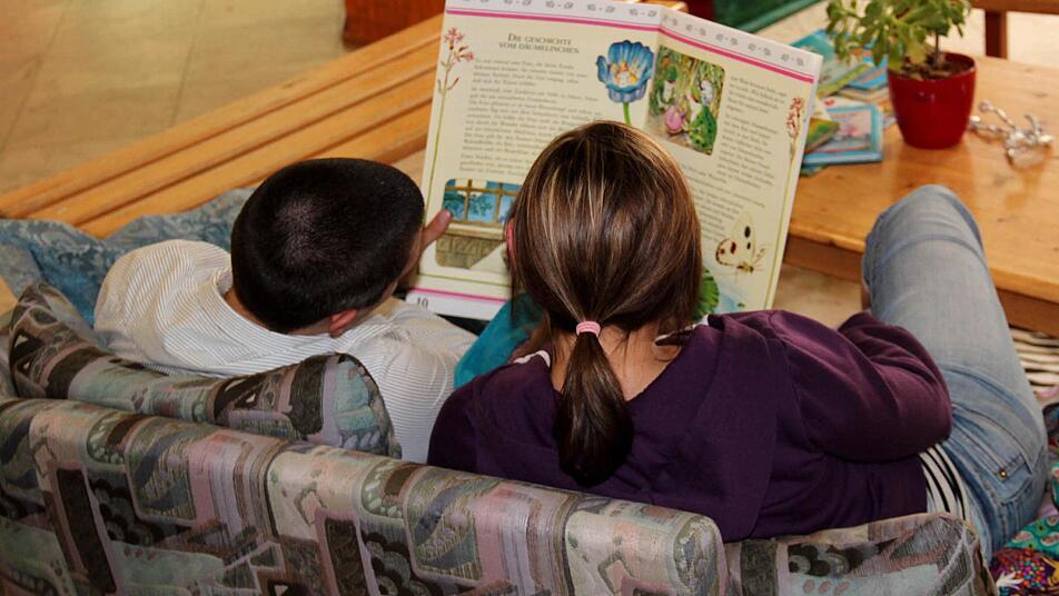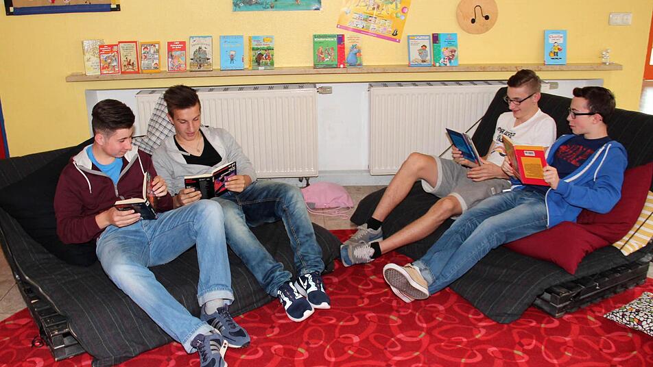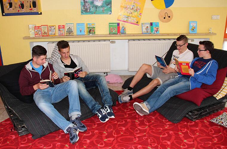 Schon Tage vorher hatte sich die Aula der Grundschule in einen gemütlichen "Lesetempel" verwandelt. Sofas und Sessel, Sitzkissen und Teppiche mit einigen Bücherregalen und Lesekisten waren wie kleine Inseln in der Halle verstreut und luden schon längere Zeit vor dem Fest zum Verweilen und Schmökern ein.