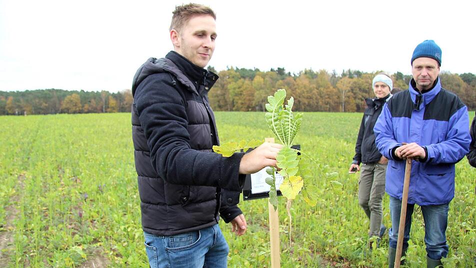 Auf einer Demonstrationsfläche bei Kairlindach erklärten Experten vom Amt für Ernährung, Landwirtschaft und Forsten den Nutzen von Zwischenfrüchten.