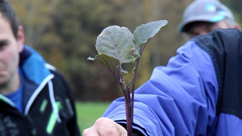 Wie Ehnis erläuterte, bieten Zwischenfrüchte Vorteile gerade bei der Lockerung, Stabilisierung und Wasseraufnahmefähigkeit der Böden. Darüber hinaus lockern sie die Fruchtfolgen, können Nährstoffe aufnehmen und dienen gerade im Herbst als Nahrung für verschiedenste Insekten sowie als Äsungs- und Schutzflächen für Niederwild und Vögel. Im Winter bieten sie einen effektiven, ganzflächigen Erosionsschutz und sind auch die Grundlage für die Mulchsaat. Dass die Pflanzen auf der Demonstrationsfläche nicht die gewünschte Größe haben und zum Beispiel der Perserklee nicht tief genug wurzelt, begründete Robert Ort mit etwas zu späten Aussaat. So habe es nach der Saat im August zwar geregnet, aber anschließend war es zu trocken. Trotzdem zeigten sich die Mitarbeiter des Amtes einigermaßen zufrieden. Auf einer Parzelle zog Neumann sogar Rettiche aus dem Boden, und Ehnis versicherte, dass sie auch essbar seien.