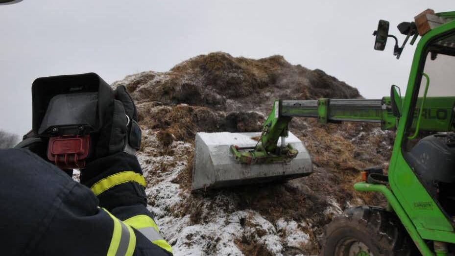 Zum Einsatz kam auch die Wärmebildkamera um die Glutnester zu lokalisieren um diese gezielt mit Wasser bekämpfen zu können. Wie ein Feuerwehrmann vor Ort sagte ist das bekämpfen solcher Brände äußerst schwierig und nur nach abtragen des Haufens ist ein erfolgreiches Löschen möglich. Die Entstehung des Brandes beruht auf dem im inneren des Haufens stattfindenden Gärungsprozess, welcher die Verdichtung des Heus beginnt.