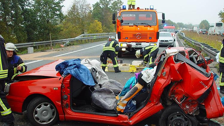 Ein Nürnberger Ehepaar war von einem dortigen Rastplatz zurück auf die Autobahn gefahren. Nach ersten Auskünften der Polizei scherte der Mann zu knapp vor einem Kleintransporter ein, der auf den Golf auffuhr. Durch den Aufprall wurde das Nürnberger Auto quer über die Fahrbahn geschleudert und kam auf dem inneren Fahrstreifen zu stehen. Die beiden Personen hatten keine Möglichkeit, sich selber aus dem Auto zu befreien. Ein nachfolgender Kombi hatte Glück und kam gerade so zum Stehen. Die Unfallstelle war für den nachfolgenden Verkehr nicht mehr passierbar.
