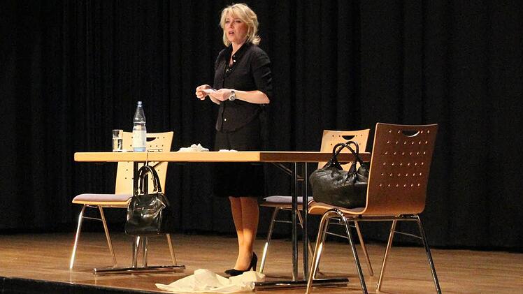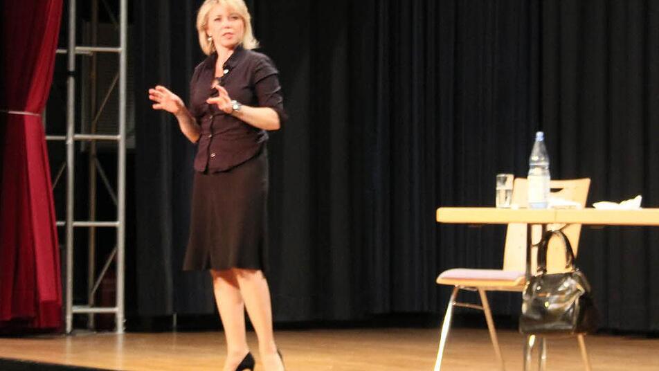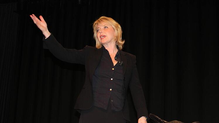 Natürlich durften auch aktuelle Debatten wie der Pferdefleisch-Skandal bei dem launigen Auftritt der studierten Schauspielerin nicht fehlen: "Iglo hat vor kurzem die Käse-Tortellini wegen Metallteilen aus dem Verkehr gezogen - Hui, da sind sie ja, die Hufeisen!" Mit derart sarkastischen, aber zwischenzeitlich auch durchaus ernsten Anmerkungen zog die selbstbewusste Blondine das Publikum regelrecht in ihren Bann.