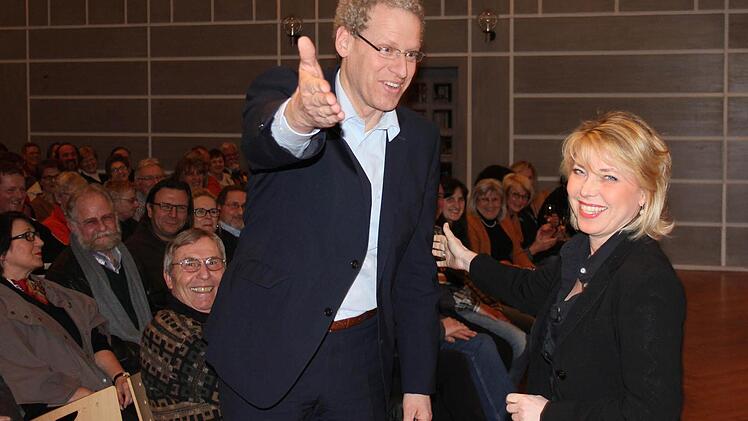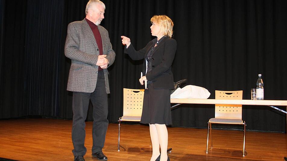 Denn die sogenannte politische Korrektheit war an diesem Abend ausnahmsweise mal unerwünscht. Bestes Beispiel: "Annette Schavan war so angenehm auffällig wie ein Mückenschiss im Mittelmeer." Dem prall gefüllten Saal des Vereinshauses gefiel der bissige Humor der wortgewandten Künstlerin. Doch in den Anfangsminuten gehörte die Bühne überraschenderweise einem Zuhörer: So entpuppte sich der Sprecher des Agenda-Beirates, Erwin Piniek, als wahrer Redekünstler und richtete - nach einer eigentlich scherzhaft gemeinten Aufforderung Solgas - tatsächlich den einen oder anderen Reim an die Bundeskanzlerin.