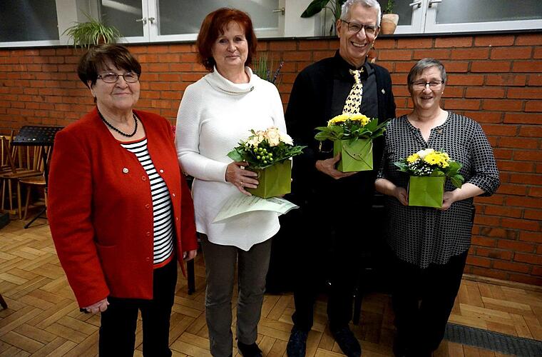 Begonnen hatte Emilie Meier damit, Urkunden des Fränkischen Sängerbundes an Hedwig Schlemmer und Peter Lautenbach für zehn Jahre Singen im Chor zu überreichen, beide singen allerdings bereits seit vielen Jahren im Niederndorfer Chor "Cantus Fox". Über 25 Jahre singt Beate Riehl-Apel bei den Heßdorfern und neben Urkunden und Nadel gab es auch noch Blumen und viel Beifall der Chormitglieder.