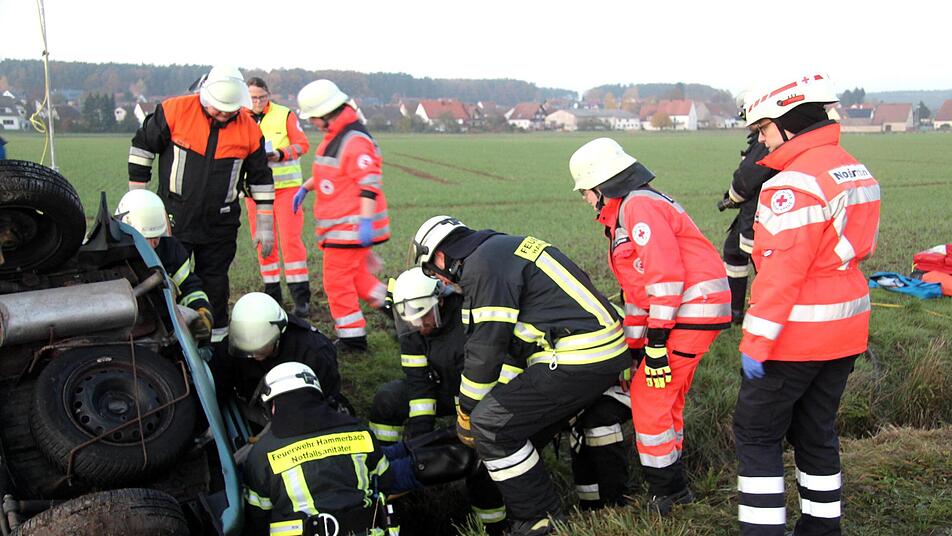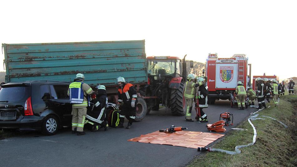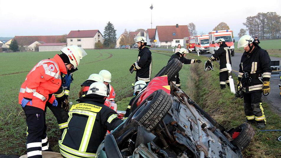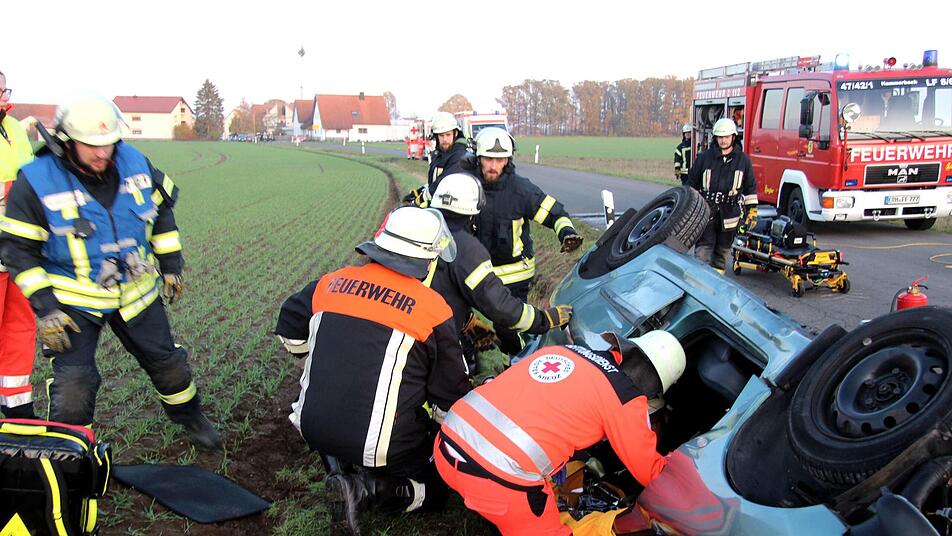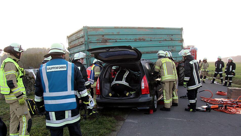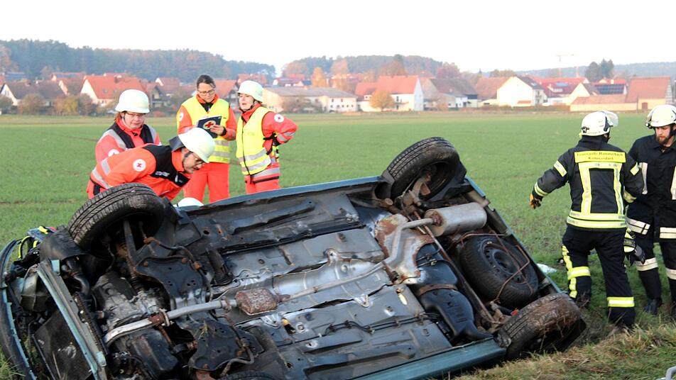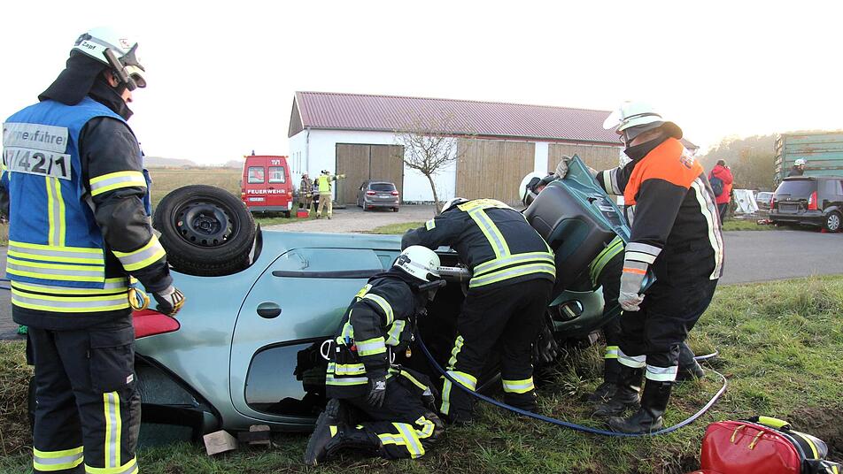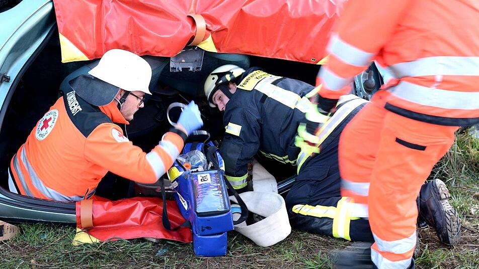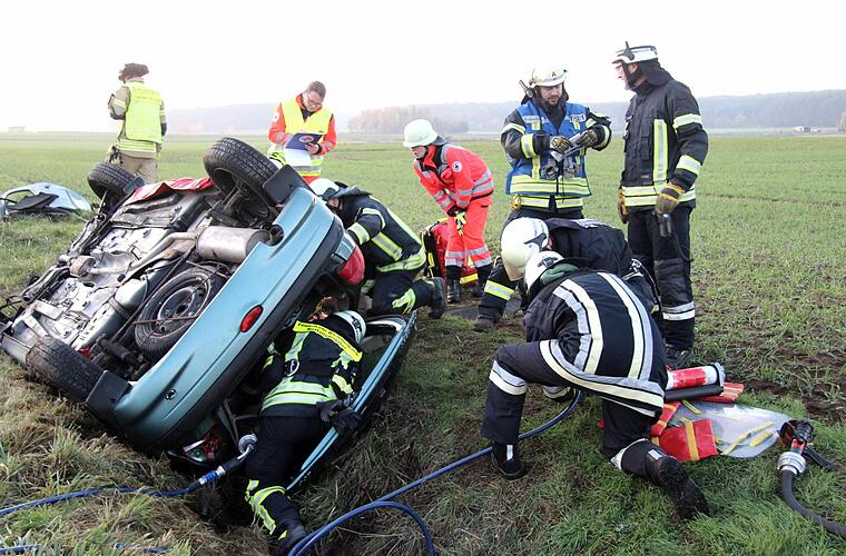 Bei dem Szenario war ein Auto unter einem landwirtschaftlichen Anhänger geraten, ein zweiter Pkw hatte sich in einem Graben überschlagen und war auf dem Dach zum Liegen gekommen. Beide Fahrzeuge waren jeweils mit einer Person besetzt.