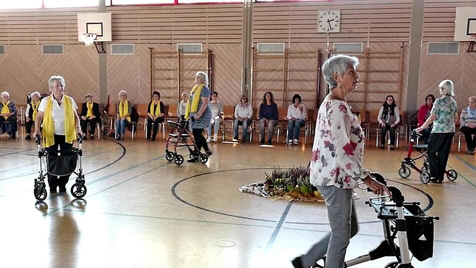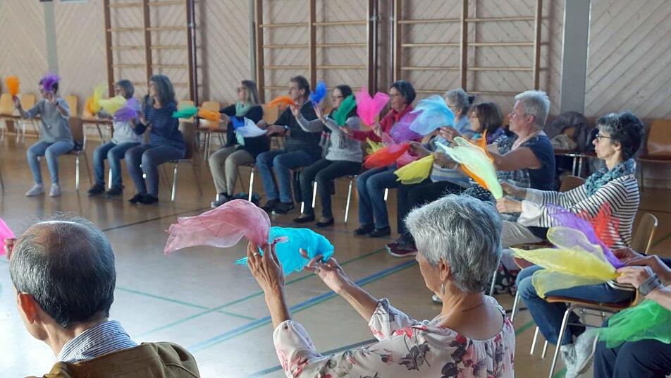 Mit einer vorhergehenden Trockenübung und Erläuterungen sowie anschließender Musik hieß es dann "Erlebnistanz", und in die Reihen kam Bewegung. Wie die Leiterin erklärte, fördere das Erlernen abwechslungsreicher Tänze im Sitzen die körperliche und geistige Fitness. Gemeinsames Bewegen in der Gruppe mache Spaß und schaffe ein Zusammengehörigkeitsgefühl.