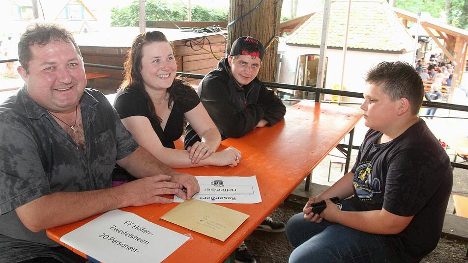Wie gut, dass es eine Wetter-App gibt: "In fünf Minuten scheint die Sonne", erklärte Hacker und ließ Andrea Pöltl vom Kulturamt und die Sport- und Ehrenamtskoordinatorin Katja Heil einen Blick auf sein Smartphone werfen. "Das ist nur der Rand eines Gewitters und es wird gleich wieder verschwinden, wir sind schon wieder im grünen Bereich", erklärte der Bürgermeister, und er behielt Recht. Als die ersten der rund 400 Rettungskräfte eintrafen, waren die Tische wieder trocken gewischt und Andrea Pöltl konnte ihre Umschläge mit den Marken verteilen.