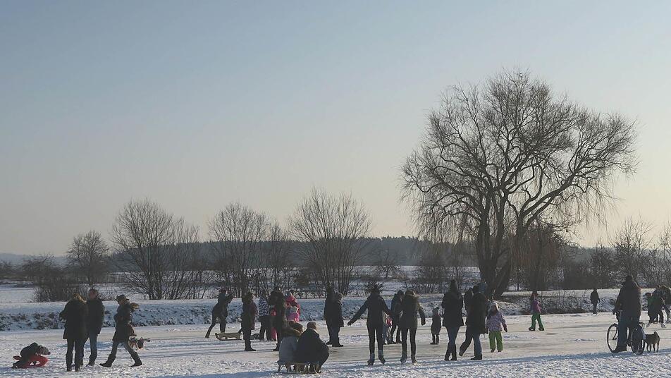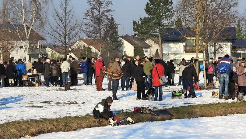 Am Eisweiher in Adelsdorf trafen sich Jung und Alt, um den strahlenden Sonnenschein zu genießen. Zum Aufwärmen gab es Glühwein und Kinderpunsch.