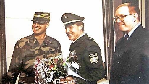 Fritz Spieß war auch dabei, als mit John Charles Odell der letzte Amerikaner aus der Stadt offiziell verabschiedet wurde. Er fotografierte aber auch Prominente auf dem früheren Golfplatz. Im Grunde ist Spieß ein "wandelndes Geschichtsbuch". Ein interessanter Zeitzeuge, der sowohl zum Kriegsende als auch zu den politischen Begebenheiten in der Stadt und ihrer industriellen Geschichte einiges erzählen kann.