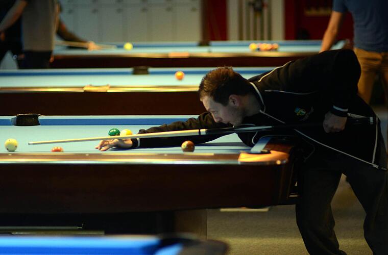 Auch am Samstag standen die Turnierteilnehmer von 10 Uhr früh bis 2 Uhr nachts am grünen Tisch. "Die Finalisten haben insgesamt etwa sechs bis sieben Stunden Wartezeit zwischen ihren Spielen. So lange muss man erst mal seine Konzentration und Körperspannung aufrecht erhalten. Das fällt den erfahrenen und geübten Billardspielern natürlich leichter", meint BC-Vorstand Richter.