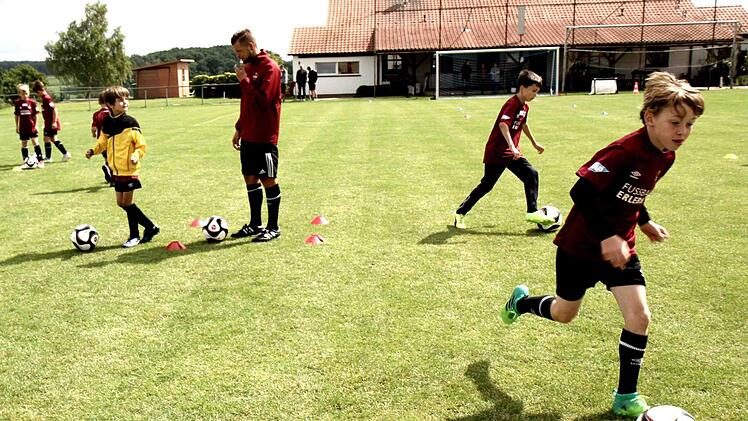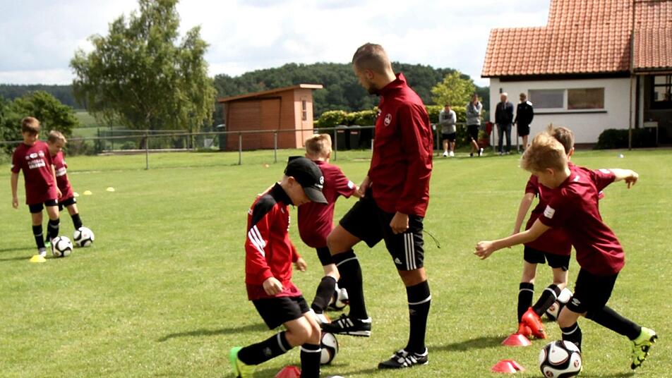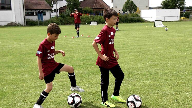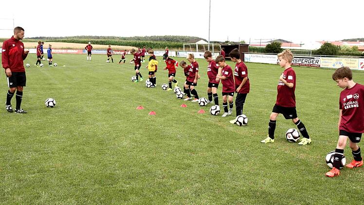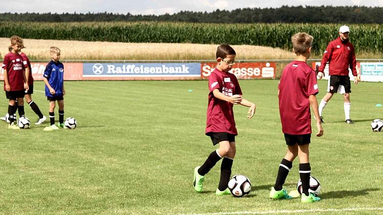 Die jüngsten Kicker des SC Münchaurach lernten beim FCN-Fußballcamp etwas ausgefallenere Trainingsmethoden kennen.