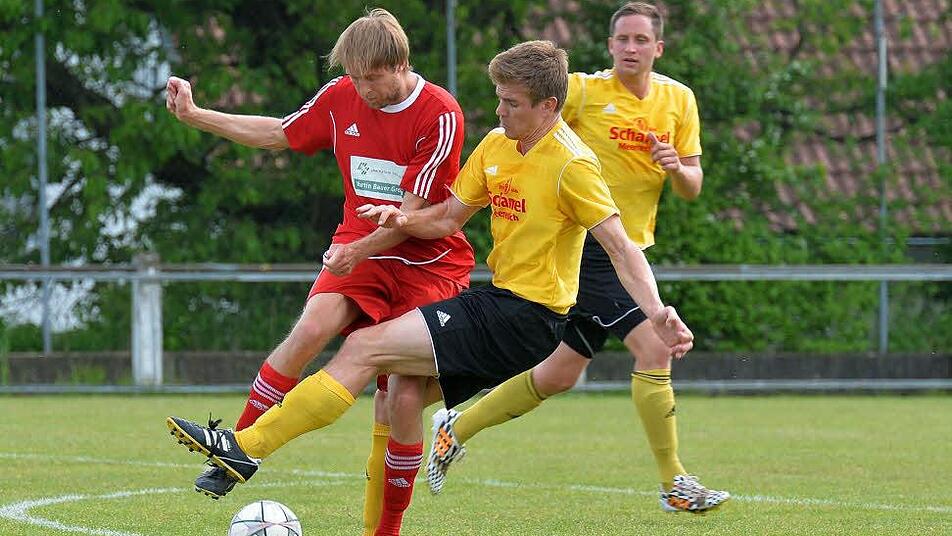 Gegner nicht beeinflussen lassen wollten. Erst nachdem Marco Amling eine hochkarätige Chance vor dem Torhüter vergab, kam Adelsdorf besser in die Partie und hätte gleichfalls die Führung erzielen können. Pascal Benes Schuss ging knapp drüber, Andi Mönius scheiterte im Eins-gegen-eins an Torwart Florian Peter. Die 500 Zuschauer schwitzten im Stehen, den Spielern lief das Wasser hinunter. Bei diesem Wetter war es von entscheidendem Vorteil, das erste Tor zu erzielen, und nach 36 Minuten war es so weit. Nach einem umstrittenen Freistoßpfiff flankte Michael Thomann auf Eric Stübing, der am hinteren Pfosten zum 0:1 einschoss. Zum ungünstigsten Zeitpunkt, direkt nach der Halbzeit, legte Herzogenaurach den zweiten Treffer nach. Marco Amling legte quer auf Kevin Rockwell und es hieß 0:2 (48.). Adelsdorf musste nun aufmachen und Herzogenaurach konterte.