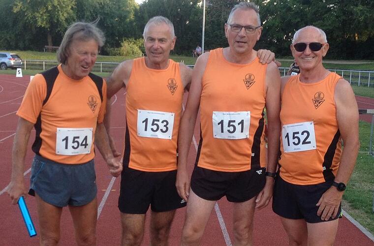 Die 4x-100-Meter-Staffel des TSV Höchstadt setzte sich gegen den einzigen Konkurrenten durch und holte Gold. Von links: Rainer Scheckenbach, Kar-Heinz Schatz, Werner Dengler und Joachim Masatz.