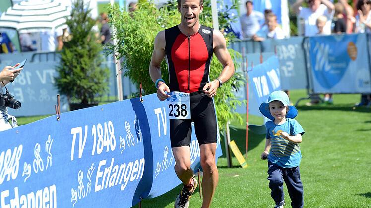 Zum dritten Mal in Folge setzt sich der Nürnberger Tobias Heining beim Erlanger Kurztriathlon durch. Vom späteren Zweiten trennen ihn rund drei Minuten - und 22 Jahre.