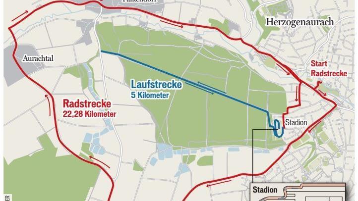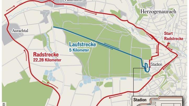Wenn sie raus sind aus dem Wasser, geht es für die Triathleten direkt in die erste Wechselzone und aufs Rad, mit dem 20 Kilometer zu absolvieren sind. "Wir setzen auf die seit Jahren bewährte Route", erklärt Ankermann. Diese führt über Dondörflein und Münchaurach zurück in die Sportstadt und muss zweimal bewältigt werden. "Dafür wird ab 8.30 Uhr die Hans-Maier-Straße ab dem Rewe-Markt bis zur Realschule gesperrt, der Straßenverkehr wird an dieser Stelle umgeleitet", informiert der Mitorganisator.