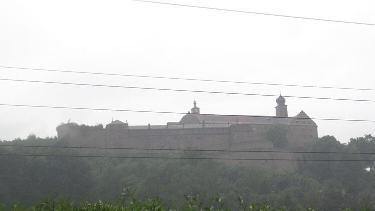 Die angekündigten Gewitter haben sich verzogen. Beim Dampflok-Museum ist mein Verpflegungsstopp. Während meine Familie das Museum besucht, fülle ich meine Speicher auf. Der letzte Abschnitt, 14 Kilometer nach Kulmbach, wartet auf mich. Die Bahnschranke nahe Ludwigschorgast bremst mich aus. Zehn Minuten warte ich schon, aber es kommt kein Zug. Dann geht die Schranke hoch. Aus den ersten Nieseltröpfchen werden dicke Regentropfen. Jetzt sind es nur noch sechs Kilometer. Ein kurzer Schauer lässt mich die Regenjacke anziehen. Noch vier Kilometer. Eine Umleitung versperrt mir den direkten Weg zum Ziel. Schon sehe ich die Plassenburg, das Wahrzeichen von Kulmbach. Um 18 Uhr laufe ich am Marktplatz ein. In der Brasserie Roberts beschließen meine Familie und ich den Lauftag und Ausflug an den Weißen Main.
