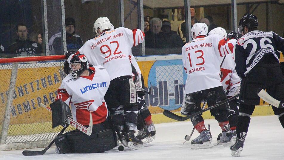 Und so gestaltete sich der Schlussabschnitt eigentlich auch: Höchstadt hatte Chancen en masse, traf den Pfosten, oder lief alleine auf den großartig aufgelegten Hildenbrand im ESC-Kasten zu. Dessen Gehäuse war aber wie zugemauert, das erlösende 4:2 wollte partout nicht fallen. Haßfurt kämpfte leidenschaftlich, hatte aber keine Torchance zu verzeichnen - bis zur 57. Minute. Da schnappte sich Revak gegen Cornforth den Puck und passte zu Eckmair. Der Routinier zeigte all seine Nervenstärke und überwand Glaser zum 3:3 (57.) - was für ein Nackenschlag.