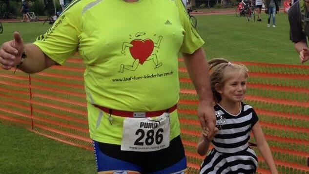 Die Geschichte für die Herzen schrieb Andreas Fuhr, der Hand in Hand mit seiner 2009 mit einem Herzfehler geborenen Tochter Ronja ins Ziel lief. Seine Zeit? "Egal.