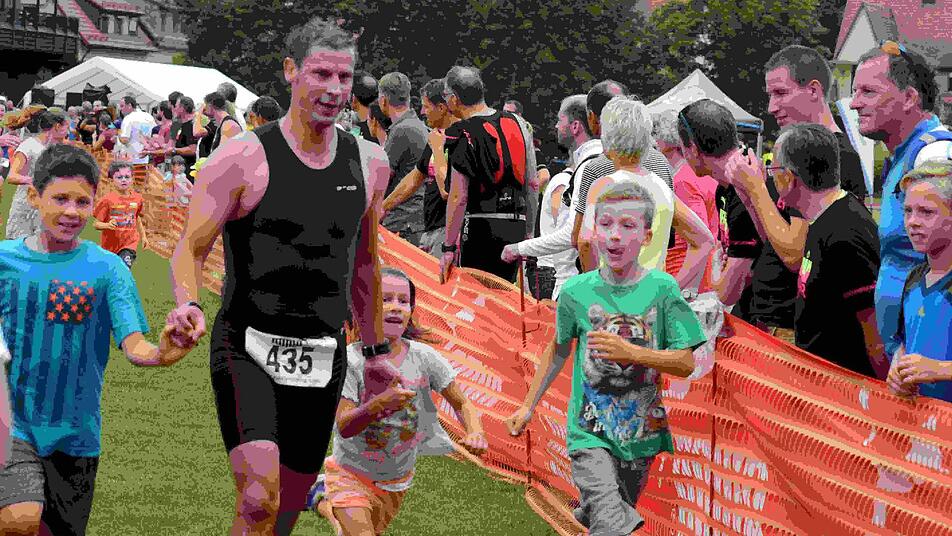 Die Forchheimer Farben wurden an einer weiteren prominenten Stelle vertreten. Stadionsprecher Carsten Wink vom SSV ließ keinen der gut 435 Starter über die Linie laufen, ohne ihn abzuklatschen. "Nach so vielen Jahren in der Szene kennt man fast alle", erzählte der 51-Jährige, während der Frauenauracher Andreas Braun von seinem Sohn ins Ziel begleitet wurde.
