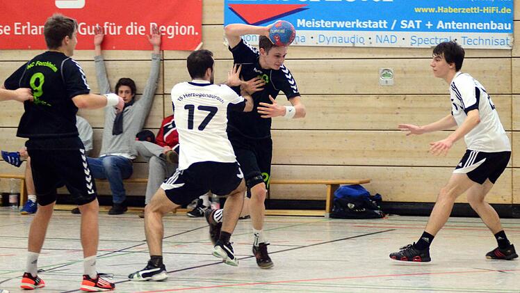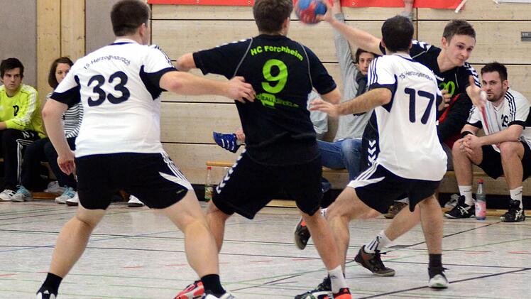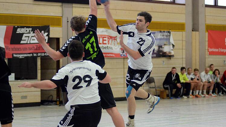 Besonders die beiden wurfgewaltigen HC-Brüder Philipp und Markus Wolf, die die beiden Halbpositionen der Gäste bekleideten, fanden immer besser in die Begegnung und nutzten entweder ihre Tormöglichkeiten eiskalt aus, oder brachten ihre diversen Kreisläufer gekonnt in Position. Besonders der halbrechte Angreifer, Markus Wolf, der mit seinen 17 Jahren zu den wohl besten Nachwuchsspielern der Bezirksoberliga zählt, bereitete der Herzogenauracher Defensive zunehmend Schwierigkeiten. So geschah es, dass die Forchheimer von Trainer Dirk Samel einen 5:0-Lauf starteten und zwischenzeitlich auf 6:8 davonzogen.