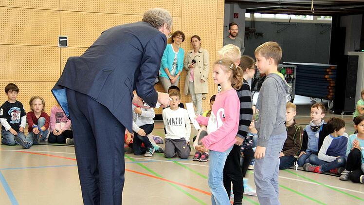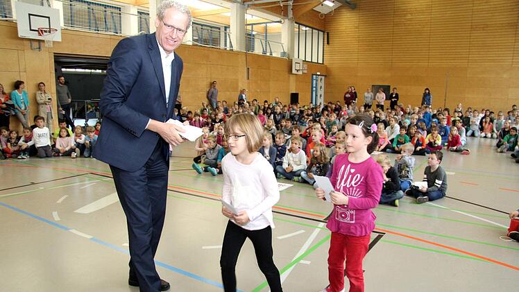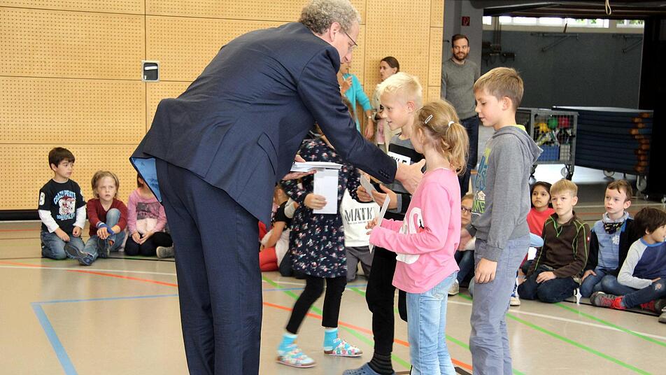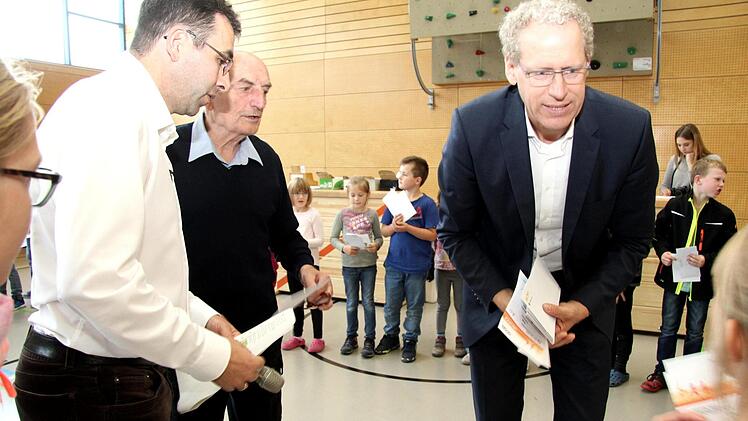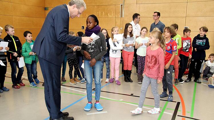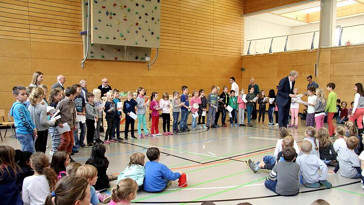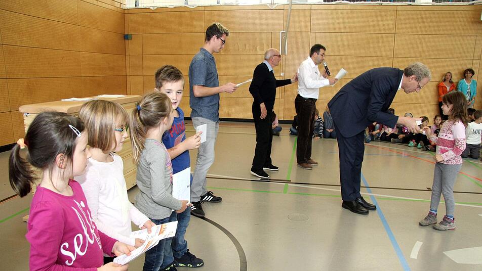 Mächtig zu tun hatte dabei auch Sportabzeichen-Obmann Herbert Meier von der Turnerschaft. Er übernahm die Auswertung der sportlichen Leistungen. Wie Rektor Hahn erläuterte, wurden die Lehrkräfte bei der Durchführung an den vier Wettbewerbstagen beim Messen, Zeitnehmen und Aufschreiben der Ergebnisse in die Klassenlisten von Schülereltern unterstützt. "Als Grundschule wollen wir mit dem Sportabzeichen-Wettbewerb auch zeigen, dass Herzogenaurach eine Sportstadt ist", erklärte der Rektor.