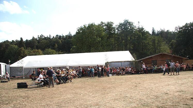 Der Kerwa-Baum der Ortsburschen war natürlich etwas wuchtiger und größer, aber nach einer knappen Stunde gab es ebenfalls einen Tusch der Blasmusiker und viel Befall der zahlreichen Zuschauer. Traditionell gibt es in Falkendorf beim Baumaufstellen Küchle und Kaffee und es trifft sich nahezu das gesamte Dorf. Aber auch Ortsburschen der umliegenden Dörfer schauen vorbei, um den einen oder anderen nicht so ernst gemeinten hämischen Spruch loszulassen. Gegenseitige Kirchweihbesuche der Ortsburschen sind obligatorisch und es wird gemeinsam gefeiert. Trotz der Freundschaften untereinander, ganz trauen sie sich gegenseitig dann doch nicht und der Baum wird bis zum darauffolgenden Tag bewacht. Dass da auch Ortsburschen aus einem Nachbarort mit dabei sind, gehört dann auch wieder dazu.
