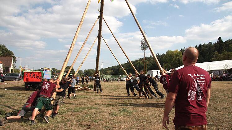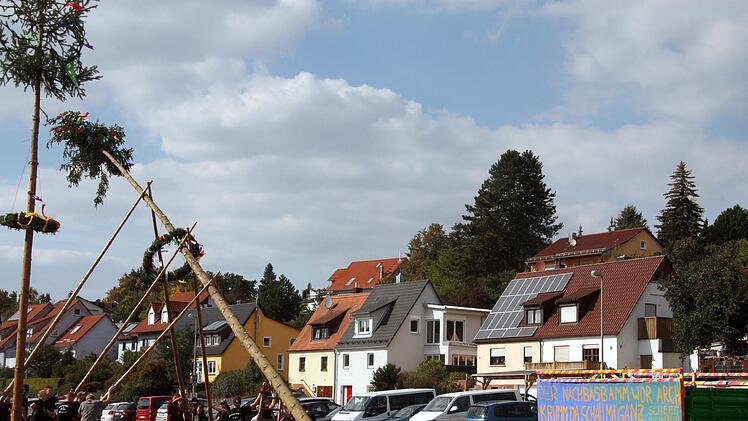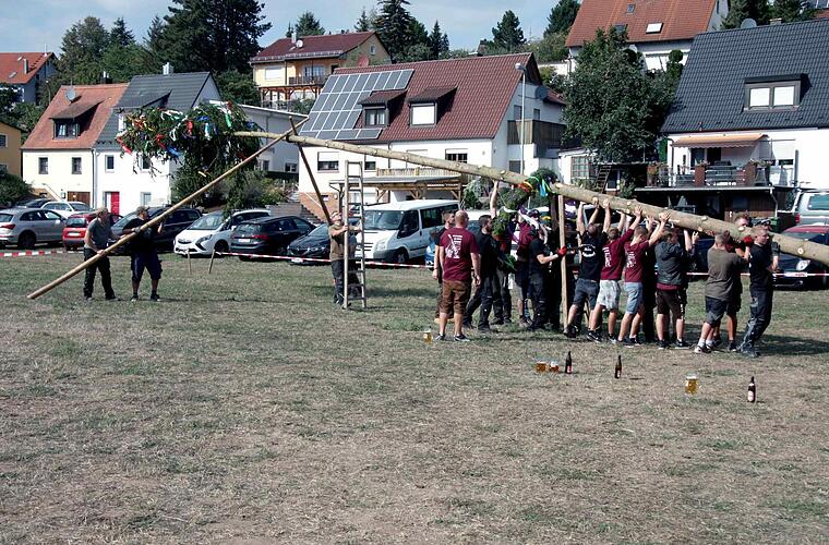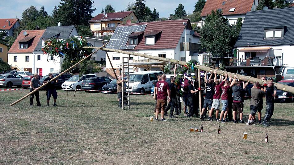 Bei den Falkendorfer Ortsburschen und Ortsmadle wird rechtzeitig für den Nachwuchs gesorgt und die "Mini Ortsburschen & Madle" richteten erstmals zur Kerwa einen eigenen Baum auf.