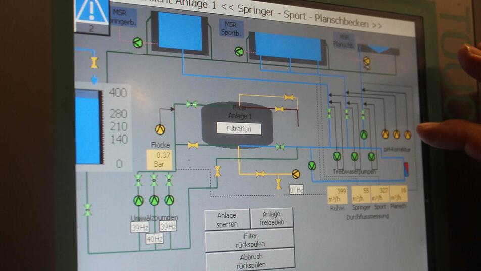 Für die Badegäste nicht zu sehen ist die Erneuerung der Wasseraufbereitungstechnik. Gesteuert wird nun alles über einen zentralen Bildschirm.