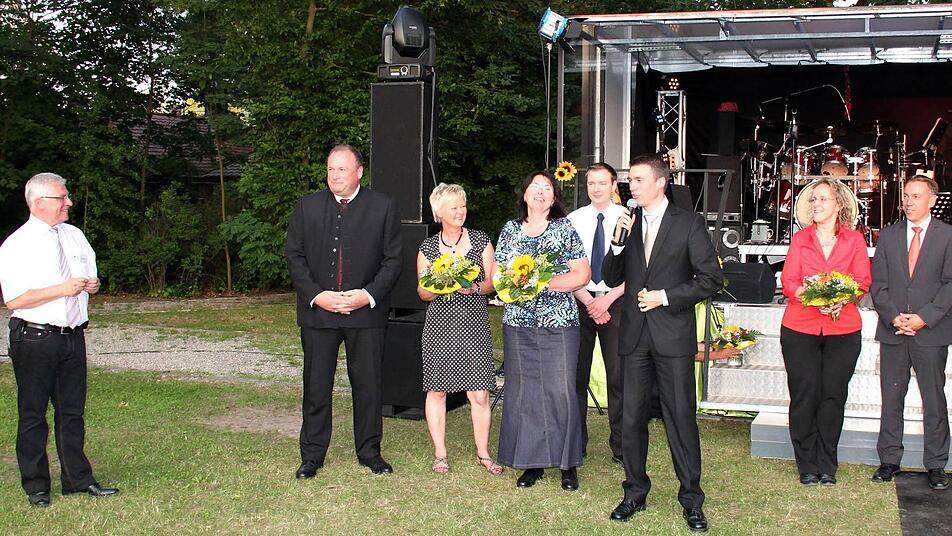 Schon Tage vor dem Schlossgartenfest hatten sich viele freiwillige Helfer der CSU, der JU und der FU in den Adelsdorfer Schlossgarten begeben, um das große Ereignis vorzubereiten. Die Festgäste wurden am Samstagabend vom Tor von der Hauptstraße kommend am Ende des Kiesweges, der zum hinteren Garten führt, von den Damen der Frauenunion mit Sekt und Orangensaft begrüßt. Viele politische Ehrengäste hieß der Ortsvorsitzende, Hans Mönius, später persönlich willkommen - darunter Bürgermeister und Hausherr des Schlosses Karsten Fischkal (FW), die beiden Altbürgermeister und Ehrenvorsitzenden der CSU Ewald Münch und Armin Goß sowie Alexander Schulz, Bürgermeisterkandidat von Höchstadt. Auch viele Adelsdorfer Gemeinderäte waren anwesend - aus allen politischen Gruppierungen.