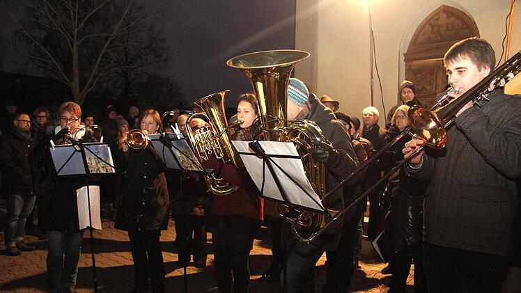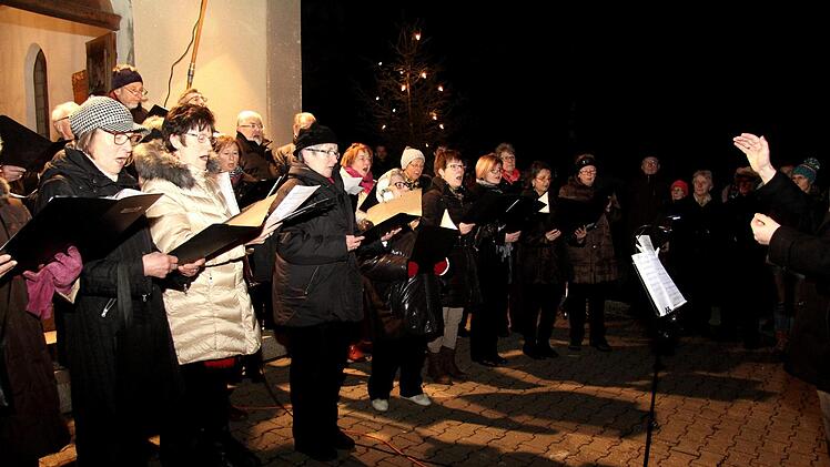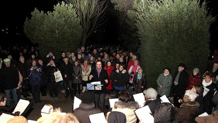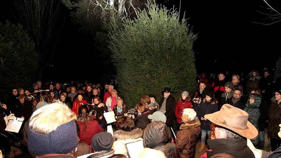 Viele Gräber waren mit weihnachtlichem Schmuck versehen und die Besucher entzündeten vor und nach dem Singen auf den Gräbern ihrer Angehörigen Lichter und Weihnachtskerzen. So entfaltete sich diese speziell weihnachtliche Atmosphäre auf einem Friedhof. Zwischen den Liedvorträgen und den Klängen der Bläsergruppe wurde die Weihnachtsgeschichte auf Fränkisch gelesen. Die stimmungsvolle Atmosphäre und der Klang der unzähligen Stimmen und die Weisen des Bläserensembles bildeten den Rahmen für das ganz private Gedenken.