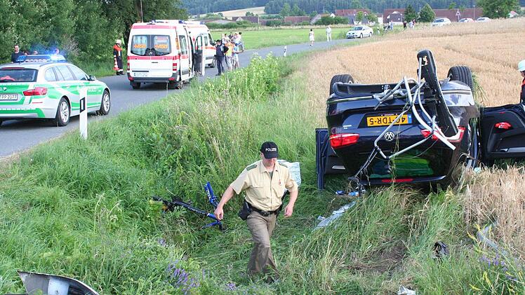 Wie die Polizei berichtet, missachtete der niederländische Fahrer eines VW Passat von Albach kommend am Stoppschild der Kreuzung an der Staatsstraße die Vorfahrt eines 54-Jährigen aus Eggolsheim, der mit seiner 25-jährigen Tochter in einem VW-Sharan unterwegs war. Der Sharan stieß gegen die linke Seite des Passat, der sich überschlug und im angrenzenden Feld auf dem Dach landete.