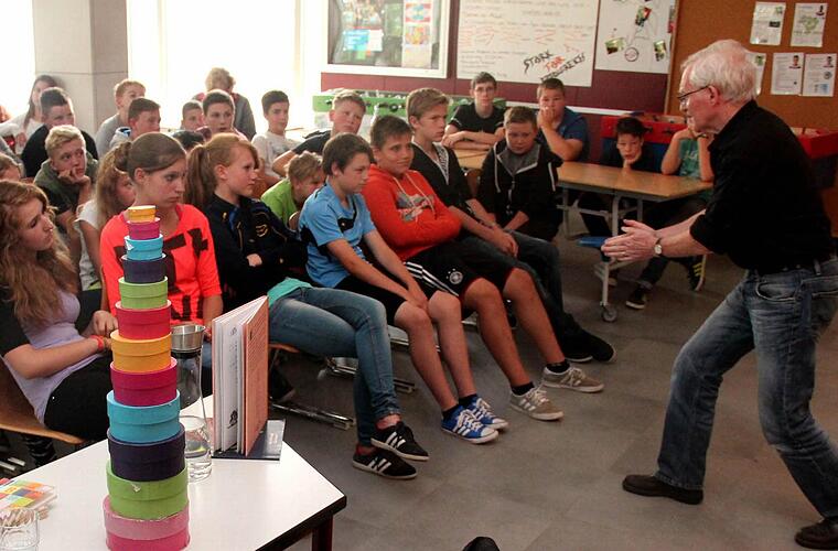 Deswegen seien alle fünf Sinne für das Schreiben sehr wichtig. "Ihr müsst euch nur trauen", ermunterte er immer wieder seine Zuhörer, und gar mancher ging nach Hause mit dem Gedanken, auch einmal eine bunte - vielleicht eine grüne Geschichte, eine Geschichte voller Ruhe, Zufriedenheit, Hoffnung und Erfolg - aufzuschreiben.