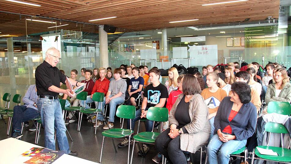 Er erzählte von der Grünen Insel, seiner Heimatgemeinde Kiltimagh nahe Höchstadts Partnerstadt Castlebar und verriet seinen Kindertraum, einmal Poet zu werden. Kurzweilig waren alle seine Lesungen, und der Barde verstand es glänzend, den Schülern und den Erwachsenen die anfängliche Scheu zu nehmen. Er hatte bunte Boxen dabei, in denen Geschichten stecken. Sie müssen nur heraus geholt werden, erklärte McDonagh. Sie können - je nach Farbe - voller Tragik, aber auch voller Freude, Glück und Hoffnung sein.