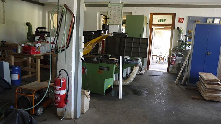 Um die Altbauten der Laufer Mühle türmen sich Bretter und Balken von durchweichten Böden und beschädigte Möbelstücke In allen Räumen surren die Trockner. In der Schreinerei stehen auf dem Betonboden noch Wasserpfützen. "Die Maschinen haben ihre Motoren oben und stehen auf massiven Stahlbeinen. Deshalb funktionieren sie noch", erklärt Münch bei einem Rundgang durchs Haus.