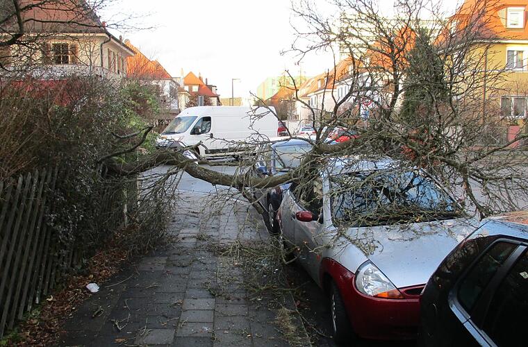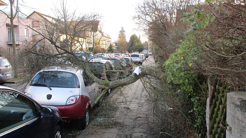 Auch hier blockierten umgestürzte Bäume Straßen. Lose Dachteile mussten gesichert werden. Zu einem aufwändigeren Einsatz kam es in der Isarstraße, wo sich Teile von einem Baugerüst gelöst hatten und demontiert werden mussten, bevor größerer Schaden entstand.