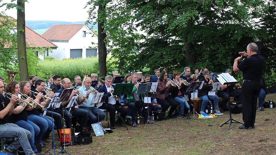Zur Südregion des Bamberger Dekanats zählen die evangelischen Pfarreien Mühlhausen, Pommersfelden, Steppach, Höchstadt, Lonnerstadt und Hirschaid. Neben ihren Pfarrern Andreas und Angelika Steinbauer, Vikar Simon Meyer, Fritz Schäfer, Andreas Sauer und Eckhard Mattke hatten die Pfarreien auch ihre Posaunenchöre nach Mühlhausen entsandt. Ein festlicher Chor, der von Wilhelm Schmidt aus Mühlhausen geleitet wurde, erklang im Hain. Auch Gemeindemitglieder der katholischen Pfarrei Wachenroth-Mühlhausen feierten mit ihren evangelischen Schwestern und Brüdern. Nicht dabei war Mühlhausens Pfarrerin Dorothea Zwölfer, die seit längerer Zeit krank ist.