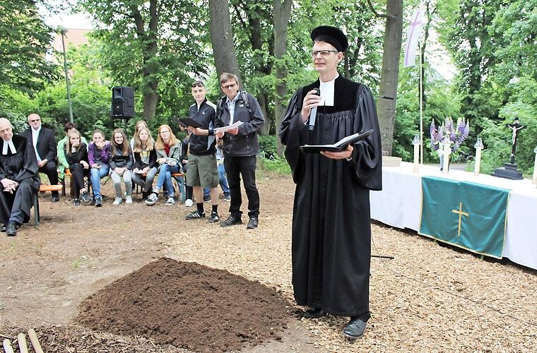 Eine gespielte Predigt war der Höhepunkt eines Gottesdienstes im Mühlhausener Scheidingshain. Wie vor 200 Jahren wurde eine Eiche gepflanzt.