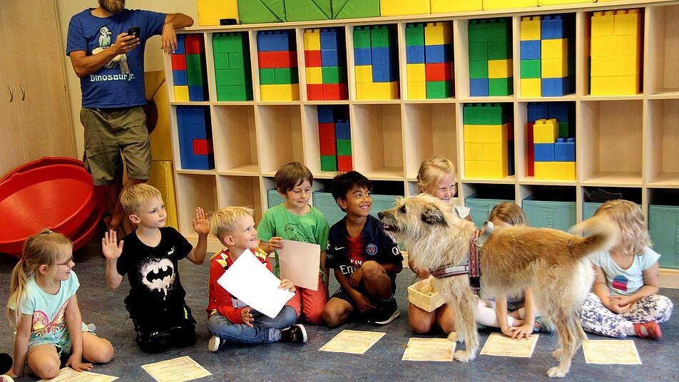 Tiere seien Impulsgeber für viele Lernprozesse. Sie regen laut Pause die menschlichen Sinne an. In vielen Ländern sind Tiere in sozialen, pädagogischen und therapeutischen Einrichtungen bereits seit vielen Jahren gängige Praxis. Wie Katrin Lengenfelder erzählte, sind auch im Kinderhaus St. Josef bereits Tiere beheimatet. In einem Terrarium sind Ameisen untergebracht, in einem anderen tummeln sich Springmäuse und in einem Aquarium fühlen sich Fische wohl. "Die Kinder betreuen die Tiere, lernen ihre Verhaltenswiesen kennen, können sich aber nicht mit ihnen unterhalten, mit ihnen kuscheln oder sie streicheln", erzählte die Leiterin. Deswegen wurde nach einem Elternabend das Experiment mit Klaus Pause und seiner Hündin Stella gestartet, aber es ging eben nur mit maximal 22 Kindern, obwohl am liebsten alle mitgemacht hätten.